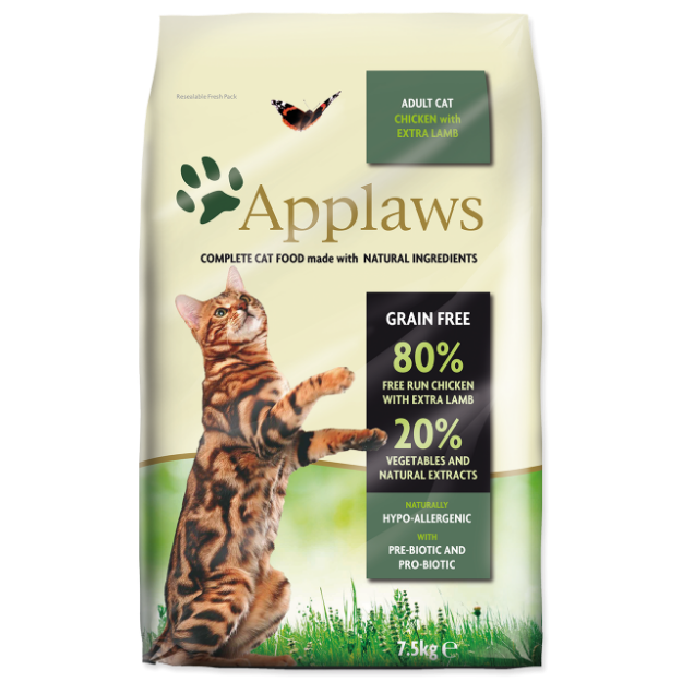 100% přírodní, kompletní krmivo se speciálním složením pro dospělé kočky, které obsahuje minimálně 80% kuřecího a jehněčího masa, zeleninu a přírodní extrakty. V krmivu jsou přírodní omega-3 a 6 mastné kyseliny pro lesklou srst a zdravou kůži, aktivní probiotika a prebiotika pomáhající podporovat aktivitu ve střevní flóře a udržují zdravý trávicí systém, výtažky z brusinek pro zdraví močových cest. Při výrobě granulí jsou použity jen vysoce kvalitní a přírodní suroviny bez přidávání jakýchkoli dochucovadel, konzervačních látek a umělých barviv.