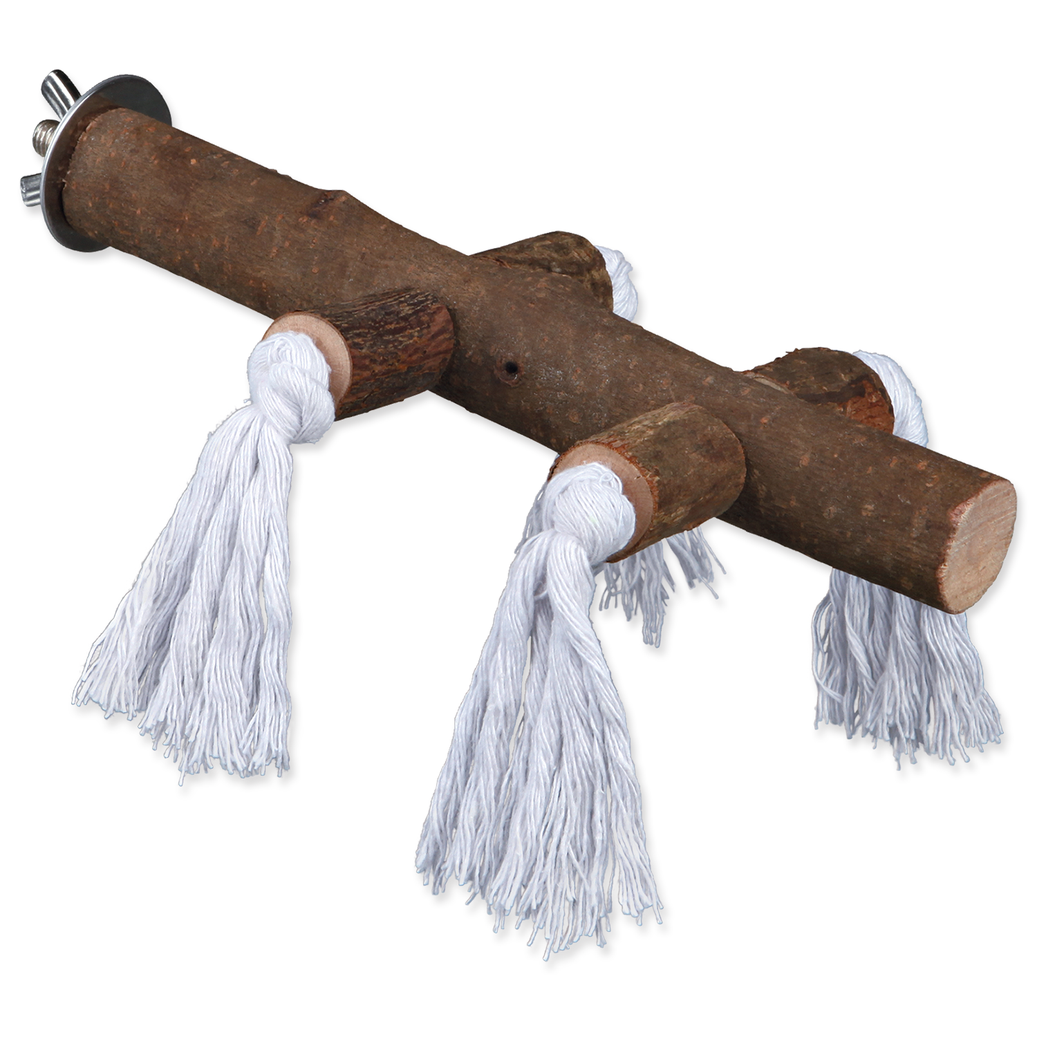 Dřevěné bidýlko s bavlněným provazem pro korely.