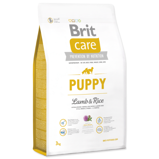 Hypoalergenní krmivo s jehněčím masem a rýží pro štěňata a mladé psy všech plemen.