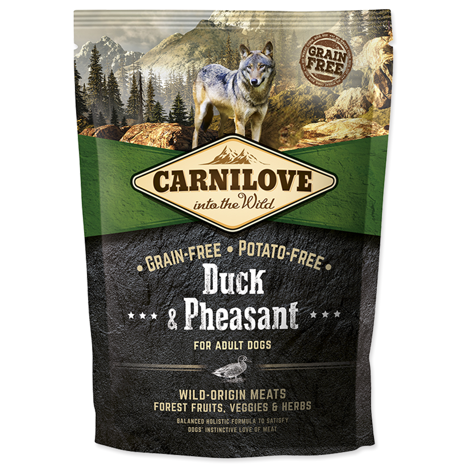 Složení: 30% kachní moučka, 22% moučka z bažanta, 20% žlutý hrách, 8% kuřecí tuk (chráněno tokoferoly, 5% kachní maso, 3% kachní játra, 3% jablka, 3% tapiokový škrob, 2% lososový olej, 1% mrkev, 1% lněné semínko, 1% cizrna, hydrolyzované skořápky korýšů (zdroj glukosaminu, 0,026%), extrakt z chrupavek (zdroj chondroitinu, 0,016%), pivovarské kvasnice (zdroj mannan-oligosacharidů, 0,015%), kořen z čekanky (zdroj frukto-oligosacharidů, 0,01%), juka schidigera (0,01%), mořská řasa (0,01%), psyllium (0,01%), tymián (0,01%), rozmarýn (0,01%), oregano (0,01%), brusinky (0,0008%), borůvky (0,0008%), maliny (0,0008%).