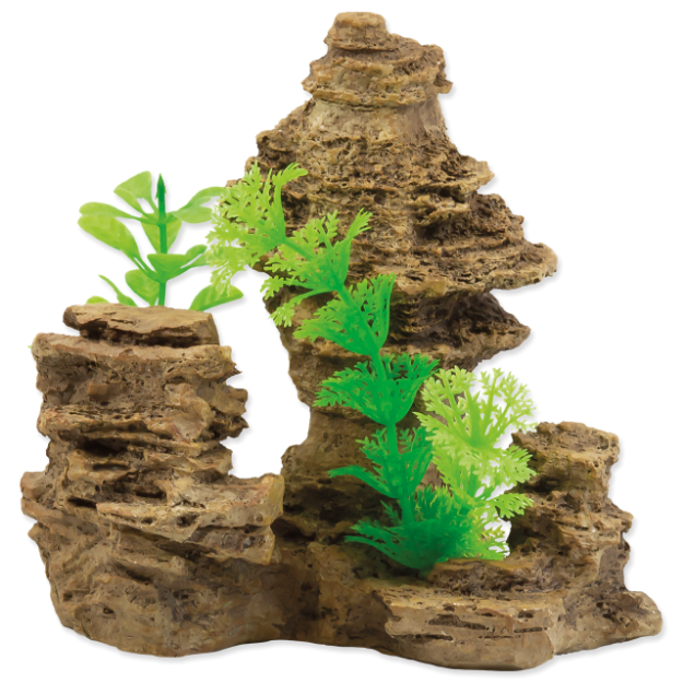 Dekorace AQUA EXCELLENT Skála s rostlinou 14 cm