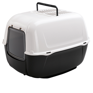 Plastová zaoblená toaleta s krytem, dvířky a uhlíkovým filtrem.