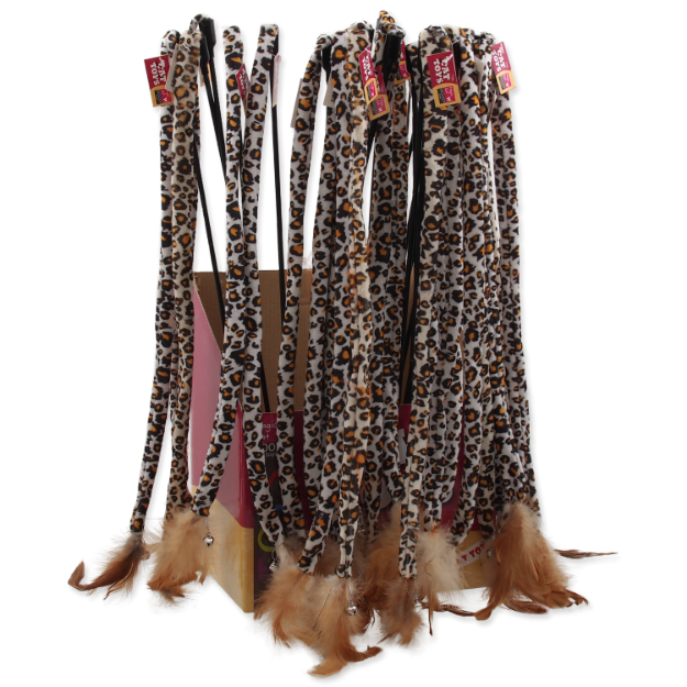Hračka MAGIC CAT prut ocásek bavlna s pírky 42 cm + 42 cm 24ks