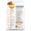 Složení: sušené kuřecí a krůtí 43 % (kuřecí 26 %, přirozený zdroj taurinu), kukuřice, čirok, sušená řepná dužina (4,6 %), prášková celulóza (4,6 %), čerstvé kuřecí (4,1 %), vepřový tuk, kuřecí šťáva, fruktooligosacharidy (0,69 %), chlorid draselný, rybí tuk, sušené pivovarské kvasnice.