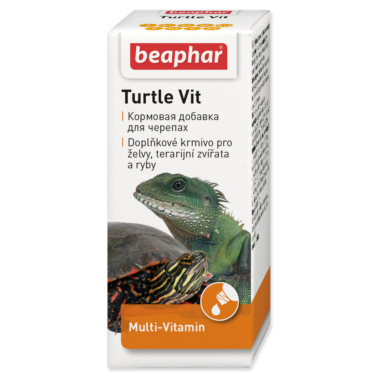Dávkování: suchozemským želvám podávejte 2 kapky, vodním želvám, rybám a terarijním zvířatům 1 kapku jednou denně s jídlem nebo rozpustit ve vodní nádrži.