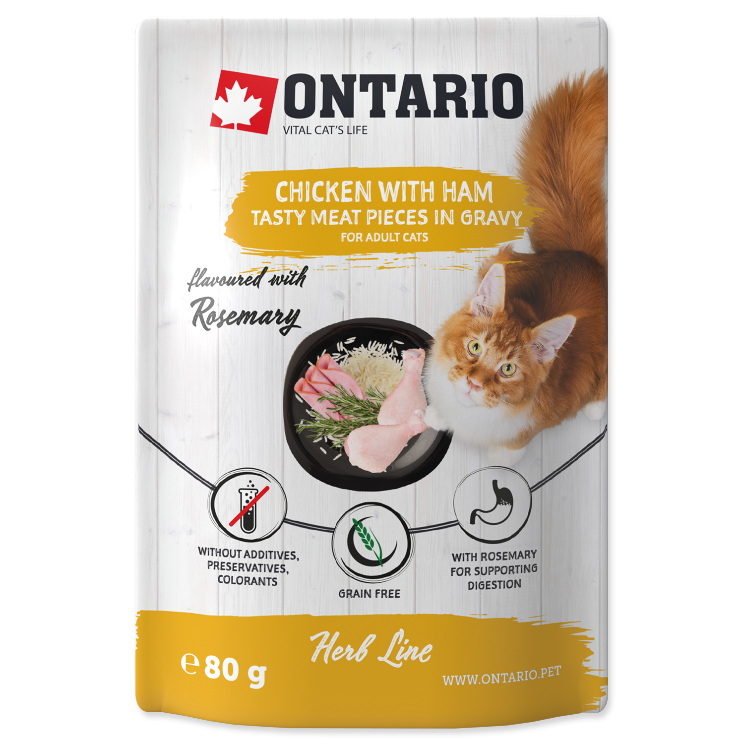 Kapsička ONTARIO Cat Herb - Chicken with Ham,Rice and Rosemary 80g