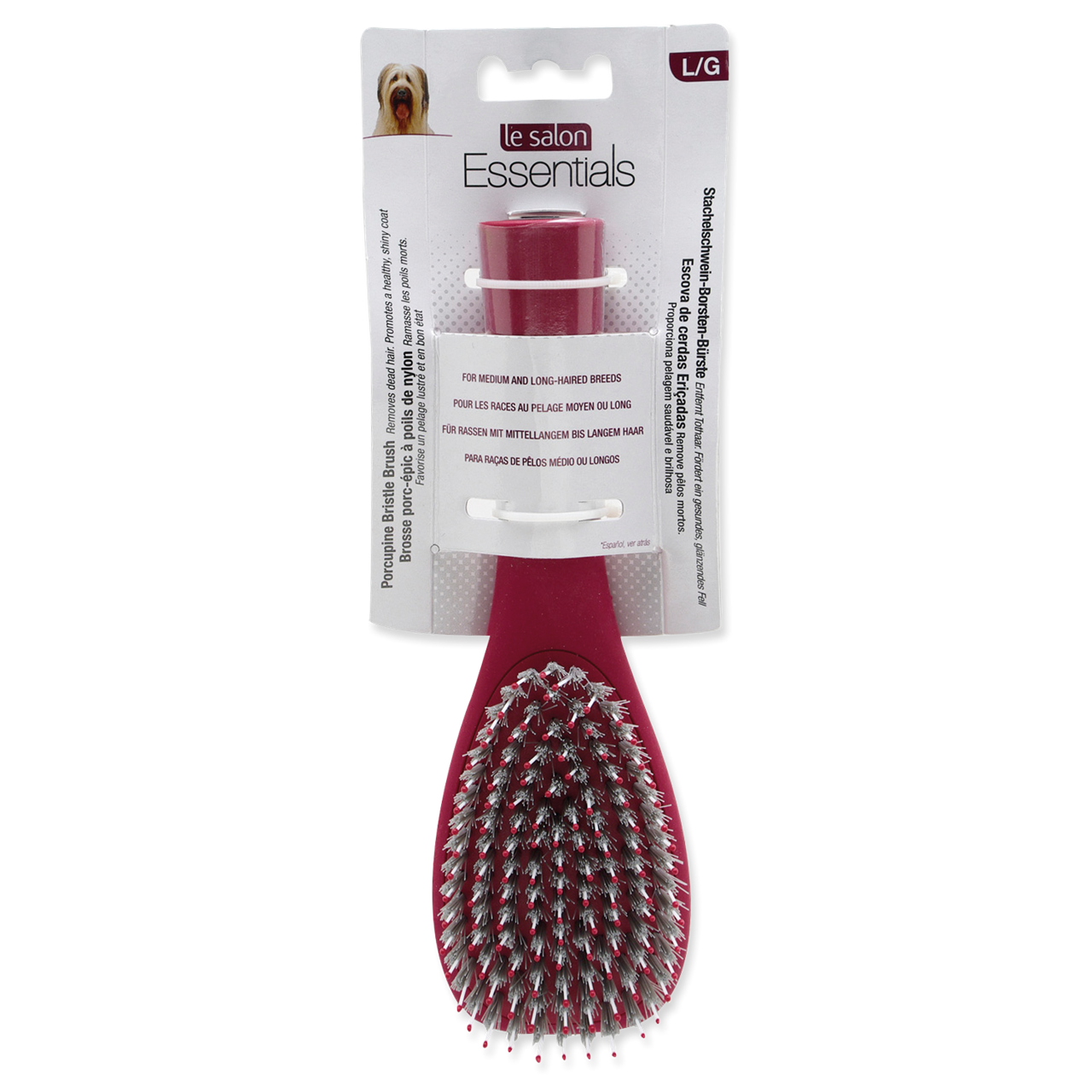 Kombinovaný velký kartáč s plastovými hroty a nylonem pro běžnou péči o srst středněsrstých a dlouhosrstých plemen psů.