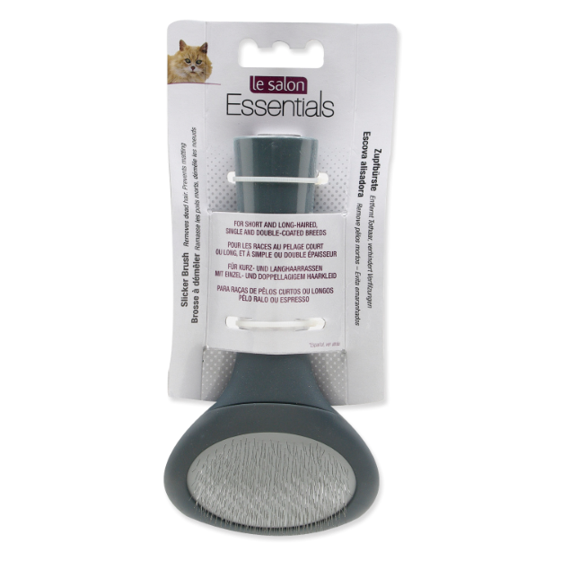 Přesně vystihuje potřeby při česání. Vyčeše odumřelé chlupy, předchází zacuchání srsti. Flexibilní, zahnuté drátky pro maximální efektivitu při česání. Hlava kartáče je prohnutá, aby se lépe přizpůsobila tvaru těla zvířete a zajišťuje tak maximální kontakt kartáče a srsti. Pohodlná měkká rukojeť umožňuje snadnou manipulaci pro česání bez námahy. Pravidelné česání zvířete je doporučeno pro zajištění zdravé a bezproblémové srsti. Doba a frekvence česání by se měla zvýšit během línání a zvláštní péči je třeba věnovat oblasti mezi ušima, hřbetu a vnitřním stranám nohou. Návod k použití: krátkosrstá a středněsrstá plemena: Začněte kartáčovat hlavu. Srst kartáčujte dlouhými tahy směrem od hlavy ke kořeni ocasu. Krátkými tahy vykartáčujte ocas a ostatní části těla kočky. Vždy kartáčujte zvíře po směru růstu srsti. Dlouhosrstá plemena: Začněte u kořene ocasu. Nejprve srst na ocase a ostatních částech těla kočky vykartáčujte krátkými tahy proti směru růstu. Poté srst vykartáčujte po směru růstu.
