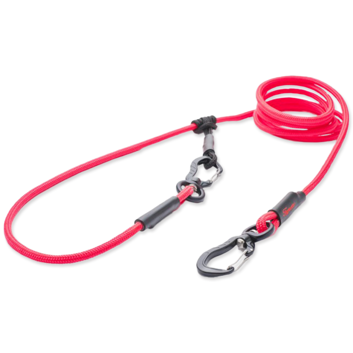 Vodítko je osazeno odlehčenými karabinami na obou koncích, tudíž se otvírají další dimenze jeho variability.