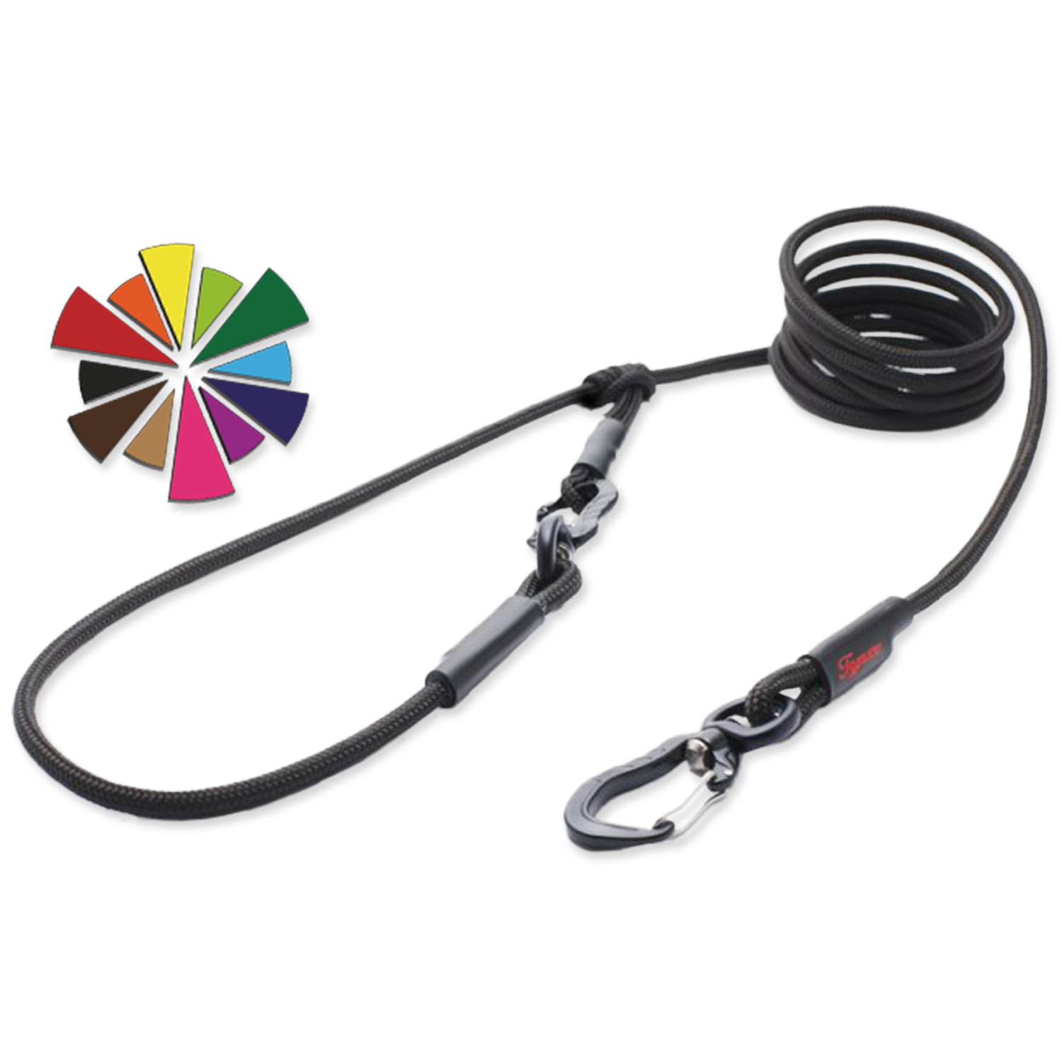 Vodítko je osazeno odlehčenými karabinami na obou koncích, tudíž se otvírají další dimenze jeho variability.