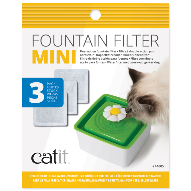 Filtry Catit Mini Fountain jsou určeny k použití s ​​fontánou Catit Mini Flower (103-43735) a je potřeba je měnit každý měsíc.