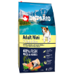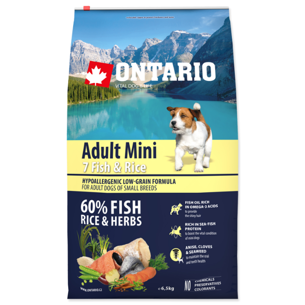 Složení: sušené mořské ryby (sleď, šprot, smáček, huňáček, sardinka, treska) (28%), rýže (24%), kuřecí tuk (12%), sušený losos (8%), hrách (5%), sušená jablka, sušená mrkev, pivovarské kvasnice, rybí olej, řepné řízky, mananoligosacharidy (180 mg/kg), fruktooligosacharidy (120 mg/kg), sušená směs mořských řas, fenyklu, tymiánu, skořice, anýzu, hřebíčku, rozmarýnu a juky Mojave (120 mg/kg).