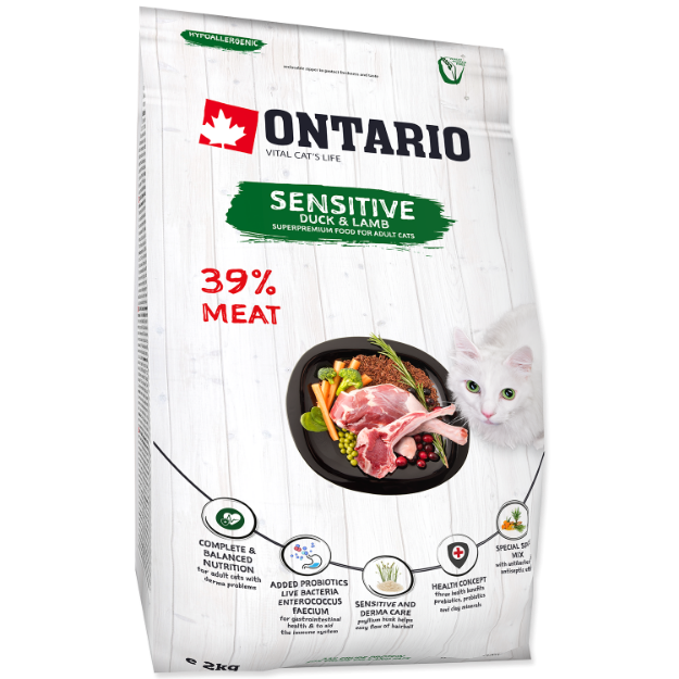 Speciálně vyvinutá hypoalergenní receptura určená pro kočky s citlivým zažíváním a kožními problémy. Má bohatě a nutričně vyvážené složení, které je základním pilířem pro zdravý a dlouhý život. Na prvním místě jsou kvalitní zdroje proteinu z kachního masa, pro zajištění ještě vyšší chutnosti a kvality je přidáváno čerstvé jehněčí maso. Vysoký obsah vlákniny z přírodních zdrojů, zejména z osemení jitrocele indického, zajišťuje snadnému průchodu bezoáru z organismu. Pečlivě vybrané sušené ovoce a zelenina dodávají organismu potřebné vitaminy, s kombinací bylinek a koření, pomáhají chránit buňky díky jejích silným antioxidačním účinkům a tím organismus před nemocemi. Speciálně přidávaná živá bakterie Enterococcus Faecium napomáhá zdravému zažívacímu traktu a posiluje imunitní systém.