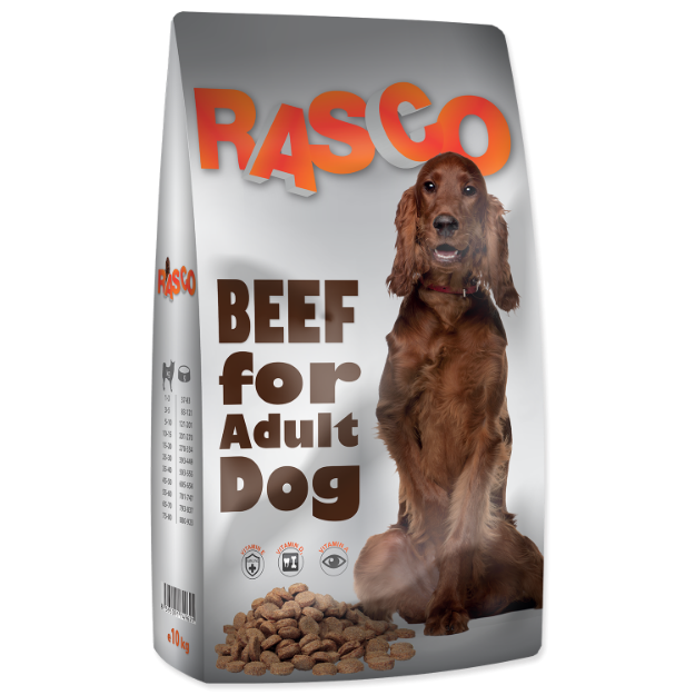 Složení: obiloviny, vedlejší výrobky rostlinného původu, maso a výrobky živočišného původu (4 % hovězí maso), oleje a tuky, minerální látky.