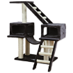 Plyšové škrabadlo s dvěma domky, schůdky a houpačkou.