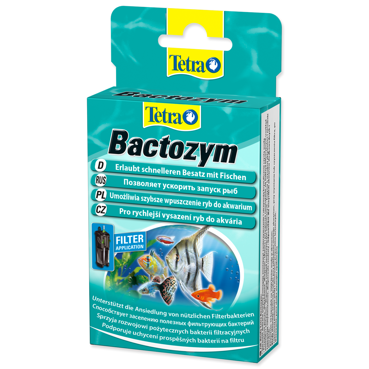 Pečuje o bioaktivní částice ve filtru a v celém akváriu. Doposud bylo třeba 3-4 dny počkat, než bylo možné do nově zřízeného akvária vypustit ryby. To je doba potřebná k tomu, aby se v akváriu vytvořili potřebné bakterie. Při použití Bactozymu to jde bez čekání, používejte ho i při každé výměně vody nebo filtračních materiálů.