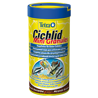 Granulované krmivo pro pestrou a vyváženou stravu malých cichlid.