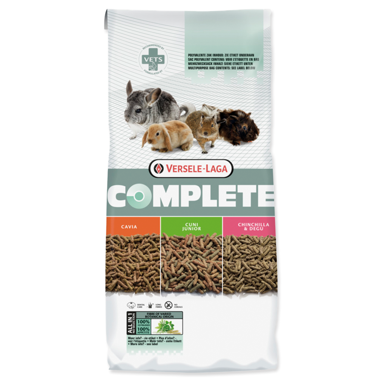 Složení: rostlinné produkty (35% AlfaAlfa), rostlinné bílkovinné extrakty, semena (2% lněné semínko), minerální látky, 0,3% frukto-oligosacharidy, měsíček, Yucca.